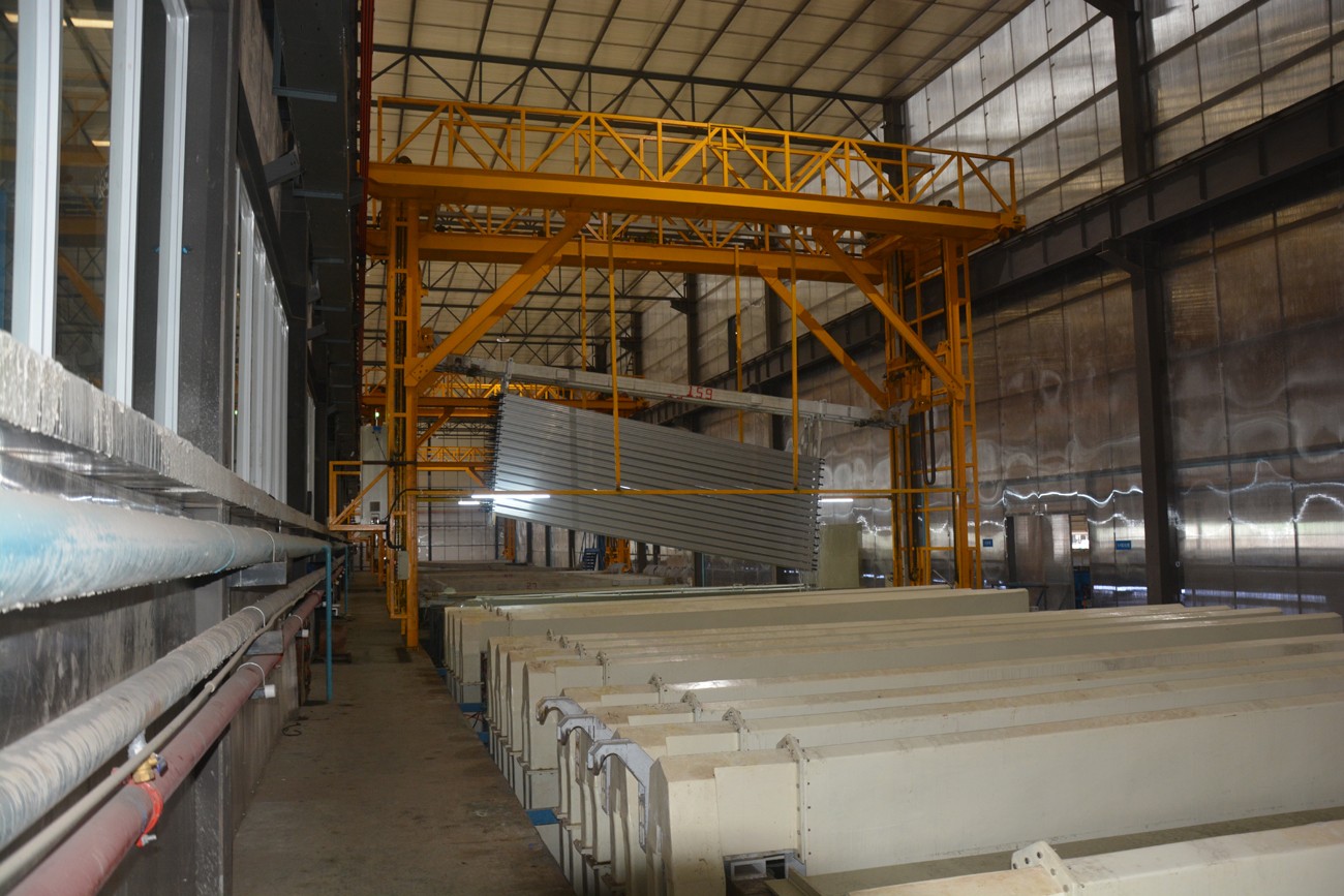 B、廣西南南鋁業1500噸智能自動氧化電泳生產線